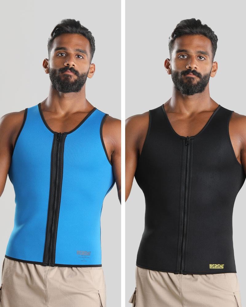 فيست رجالي سحّاب, مشد حراري للبطن ,مشد نحت الخصر يلبس على الوجهين ,مشد رجالي للصدر والبطن للرياضيين